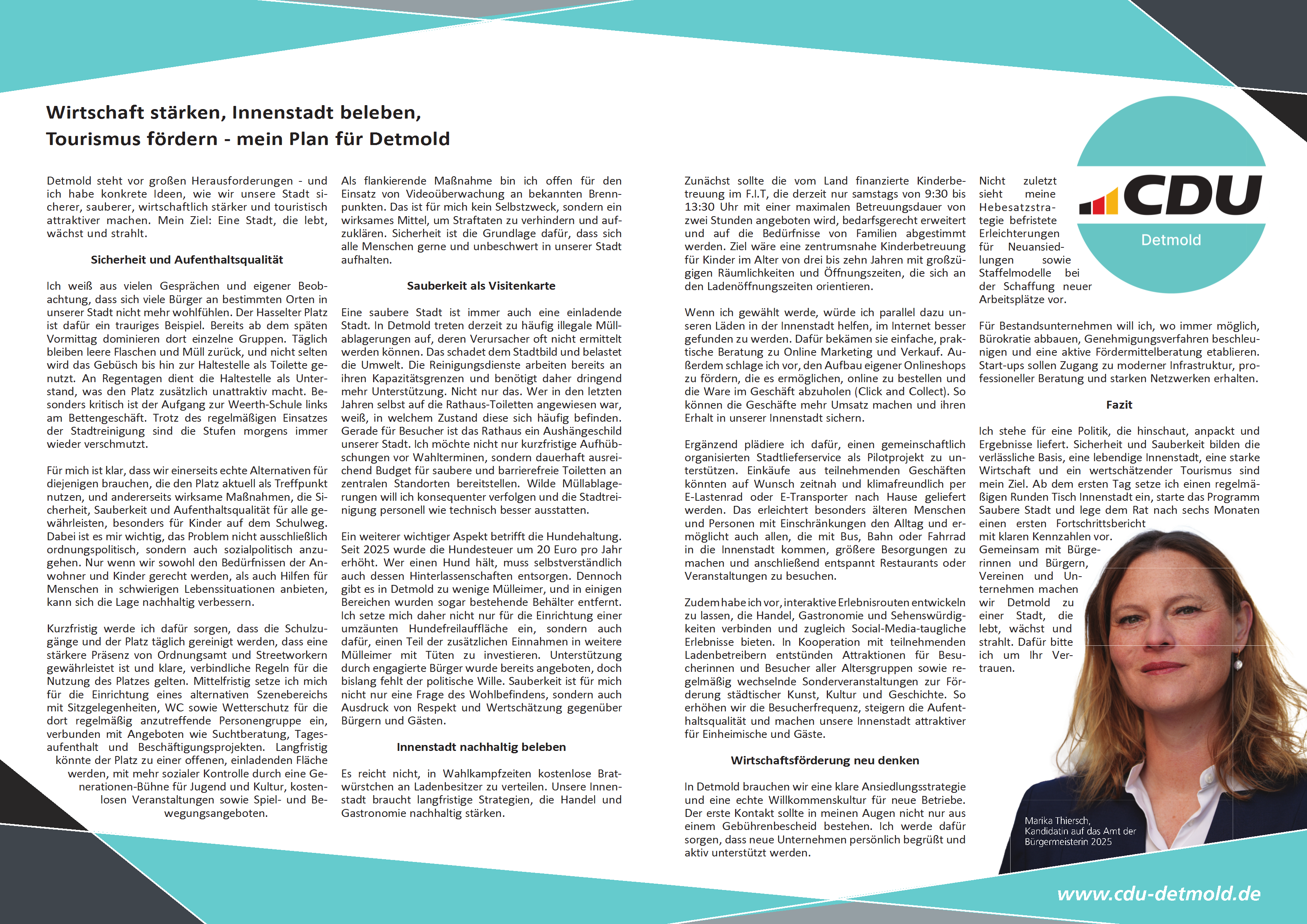 Wirtschaft stärken, Innenstadt beleben, Tourismus fördern - mein Plan für Detmold
